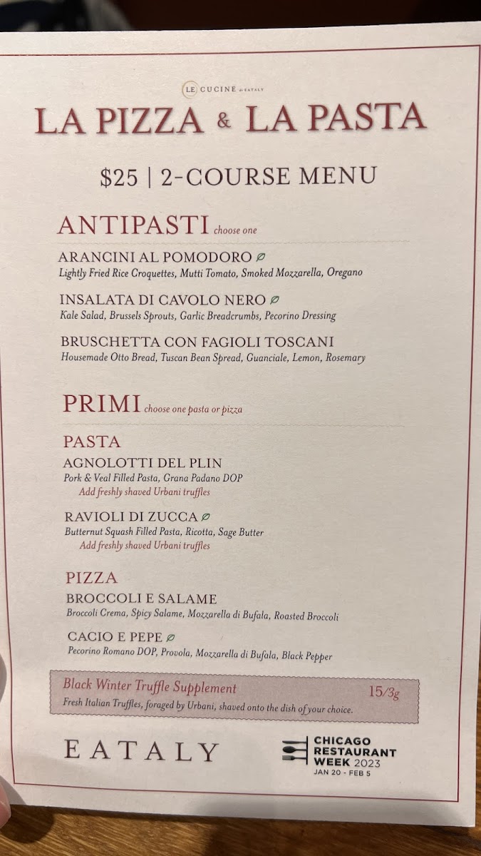 Eataly Chicago Menu (2025 Update)
